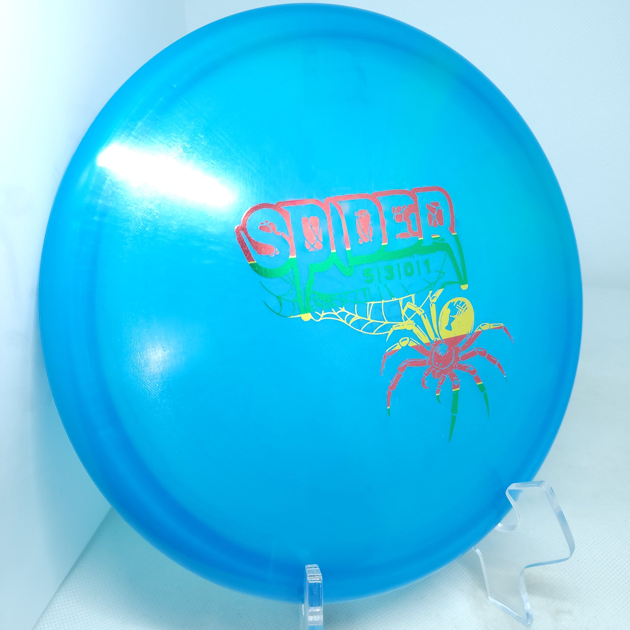 The Spider is a mid-range disc that works for hyzer, straight and turnover throws. Throw it with the nose up and the Spider will turn left, with the nose down it will turn right. The Spider is a low speed predictable disc that makes a great approach disc. Excellent for all skill levels and players who prefer a smaller diameter disc.